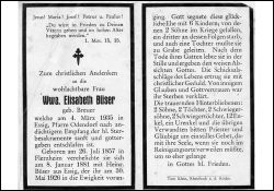∞ 8.1.1881 Heinrich Büser aus Essig, † 30.5.1926; 6 K., davon 2 Söhne im 1. Weltkrieg gefallen, ein 3. Sohn starb an den Folgen des 1. Weltkrieges; 1 Tochter † |