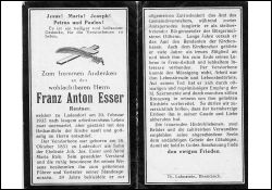 Rentner; Eltern: Johann Josef Esser u. Anna Maria geb. Rick; 39 J. Gemeindevorsteher; zeitw. stellv. Bürgermeister d. Bürgermeisterei Ollheim; Kirchenrendant; Mitgl. Kirchenchor; |