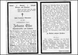 Schmiedemeister u. Landwirt; ∞ 14.5.1904 Clara Bungartz aus Roisdorf, † 2.2.1911; 2 K., davon 1 †; ∞ 11.8.1911 Elisabeth Klöckner verw. Meurer aus Palmersheim; 2 K., davon 1 †; plötzlicher Tod mitten in der Arbeit |