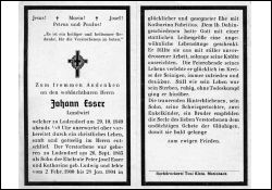 Eltern: Peter Josef Esser u. Katharina geb. Ludwig; ∞ 2.2.1900 Katharina Fabritius, † 28.1.1904; stattliche Leibesgröße; 1 überlebender Sohn |