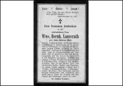 Langes Leiden; ∞ 1855 Bernhard Lanzrath, † 1873; 8 überlebende Kinder |