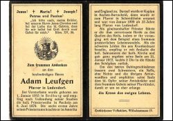 Priesterweihe Mecheln 8.6.1879; 6 J. in Amerika u. England; dann Kaplan in Aachen-Burtscheid, danach Pfarrer in Schmidtheim; seit Jan. 1899 23 J. lang Pfarrer in Ludendorf |