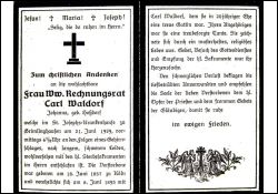 Gehirnschlag nach langem Leiden; ∞ 8.6.1893 Carl Waldorf, † nach 20 J.; |