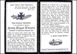Gefallener 1. Weltkrieg; Einberufung Okt. 1915; starb auf Heimaturlaub an Lungenentzündung u. Genickstarre, die er sich in den vordersten Schützengräben zugezogen hatte |