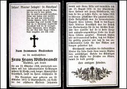 Eltern: Johannes Sendt u. Anna geb. Böhs; ∞ 21.8.1895 Franz Willebrandt, † 1925; Kinder |