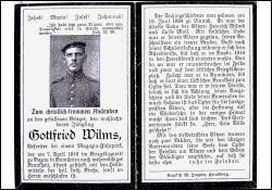 Gefallener 1. Weltkrieg; Eltern: Heinrich Wilms u. Luise geb. Moll; Nov. 1914 Einberufung; tücksiche Krankheit |
