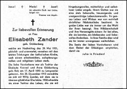 Eltern: Konrad Güldenberg u. Anna Geb. Roß; ∞ 30.12.1915 Willy Zander; 1 Tochter * 1920 |