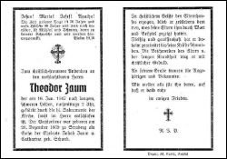 Eltern: Jakob Zaum u. Catharina geb. Schunk; Druck in Anstel |