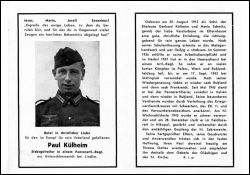 Gefallener 2. Weltkrieg; Eltern: Gerhard Külheim u. Maria geb. Schmitz; Metzgerausbildung; 17.9.1942 bei Stalingrad verwundet; 25.12.1943 schwer verwundet |