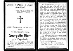 ∞ 30.9.1913 Wilhelm Riem; nach Geburt eines Sohnes am 2.11.1914 wurde sie von tückischem Leiden befallen |