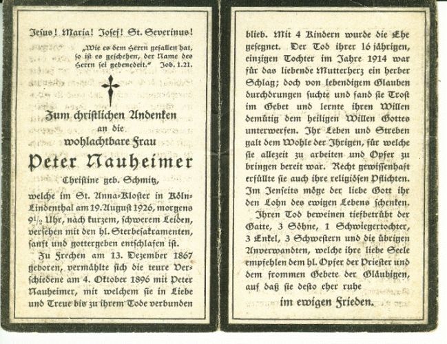 | ∞ 04.10.1896 Peter Nauheimer; 4 K., davon 1 †; |