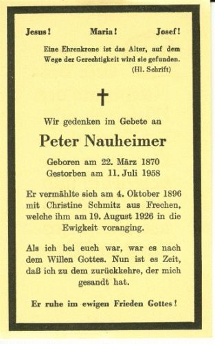 | ∞ 04.10.1896 Christine Schmitz aus Frechen, † 19.08.1926; |
