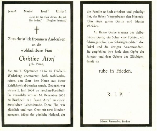 Atorf, geb. Prinz | Vorname: |