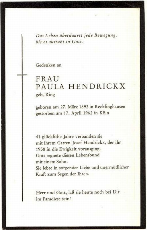 | ∞ mit Josef Hendrickx, 1958 †; 1 Sohn; |
