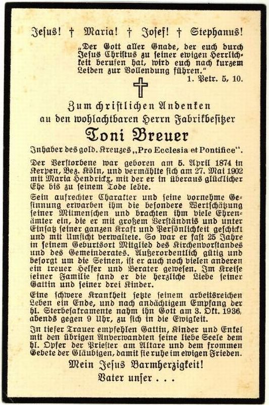 | ∞ 27.05.1902 mit Maria Hendrickx; Fabrikbesitzer; viele Ehrenämter; |