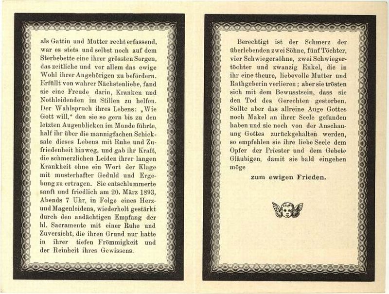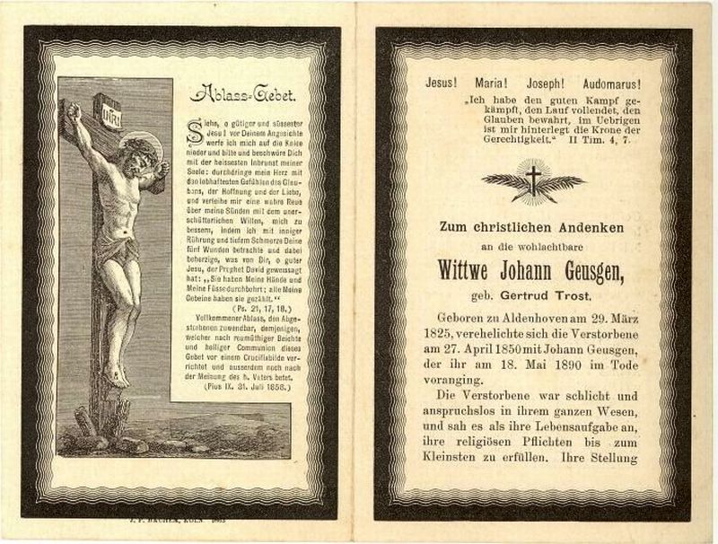 | ∞ am 27.04.1850 mit Johann Geusgen, 18.05.1890 †; 2 Söhne, 5 Töchter; |