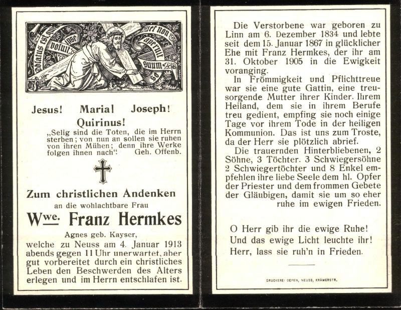 | ∞ 15.1.1867 Franz Hermkes, † 31.10.1905; 5 überlebende Kinder |