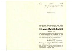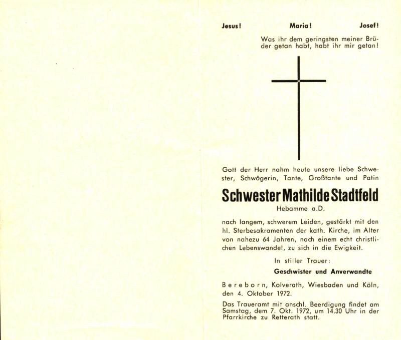 | Fast 64 J.; Hebamme; Traueramt Pfarrkirche zu Retterath (Angehörige in Kolverath, Wiesbaden, Köln) |