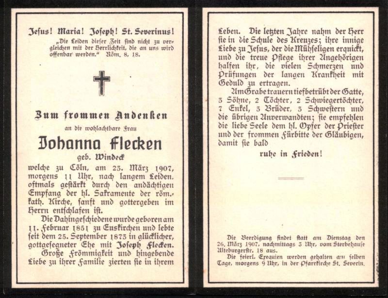 | ∞ 25.9.1873 Joseph Flecken; 5 überlebende Kinder |