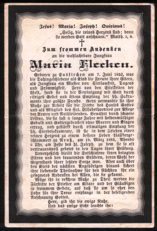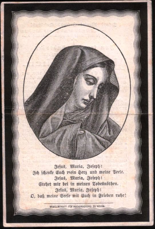 | Jungfrau; Mitgl. d. St. Elisabethvereins; fast 5 J. schweres Leiden |