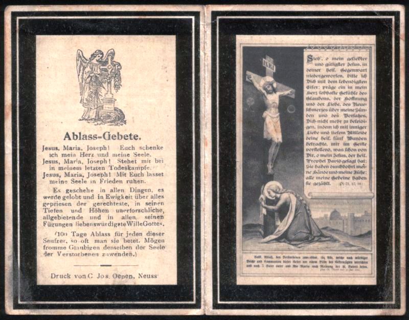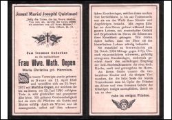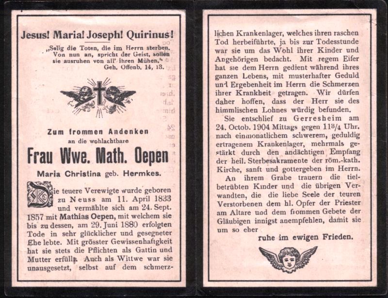 | ∞ 24.9.1857 Mathias Oepen, † 29.6.1880; schmerzhaftes Krankenlager; Kinder |