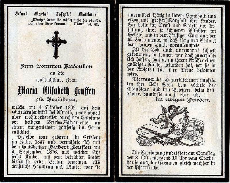 | ∞ 9.9.1876 Gutsbesitzer Hubert Leuffen; 6 K. |