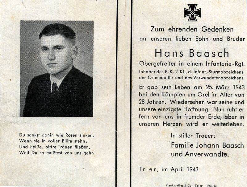 Gefallener 2. Weltkrieg; 28 J.; Druck in Trier |