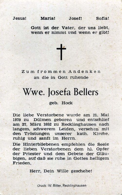 Langes, schweres Leiden; Witwe; Druck in Recklinghausen |