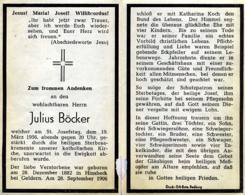 ∞ 28.9.1906 Katharina Koch; 4 K.; Geschäft; Druck in Bedburg/Erft |