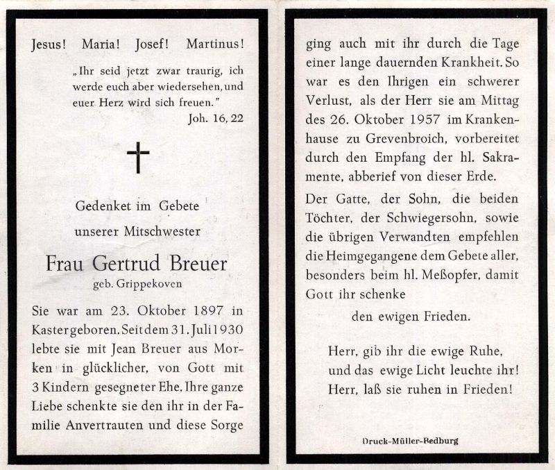 ∞ 31.7.1930 Jean Breuer; 3 K.; lange Krankheit; Druck in Bedburg/Erft |