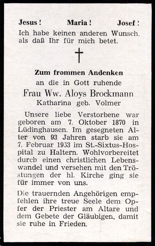 Haltern, St.-Sixtus-Hospital | Sterbedatum: |